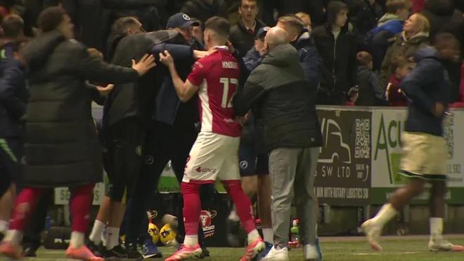 比賽結束后不久,阿什頓蓋特球場的場邊情緒突然失控,來自兩隊的球員與工作人員在邊線發(fā)生推搡。在激烈的沖超競爭背景下,沖突迅速升級。獲勝一方米爾沃爾的主教練亞歷克斯-尼爾和布里斯托爾城主帥施特魯伯都卷入其中,這一幕意味著兩家俱樂部將在賽后面臨英足總的處罰。